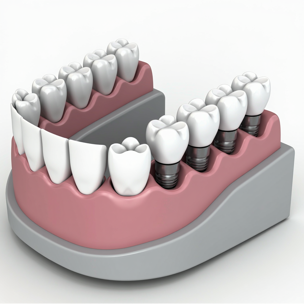 For those missing several teeth in a row, multiple implants can securely support a fixed bridge (implant bridge), restoring function and aesthetics seamlessly without relying on natural teeth.